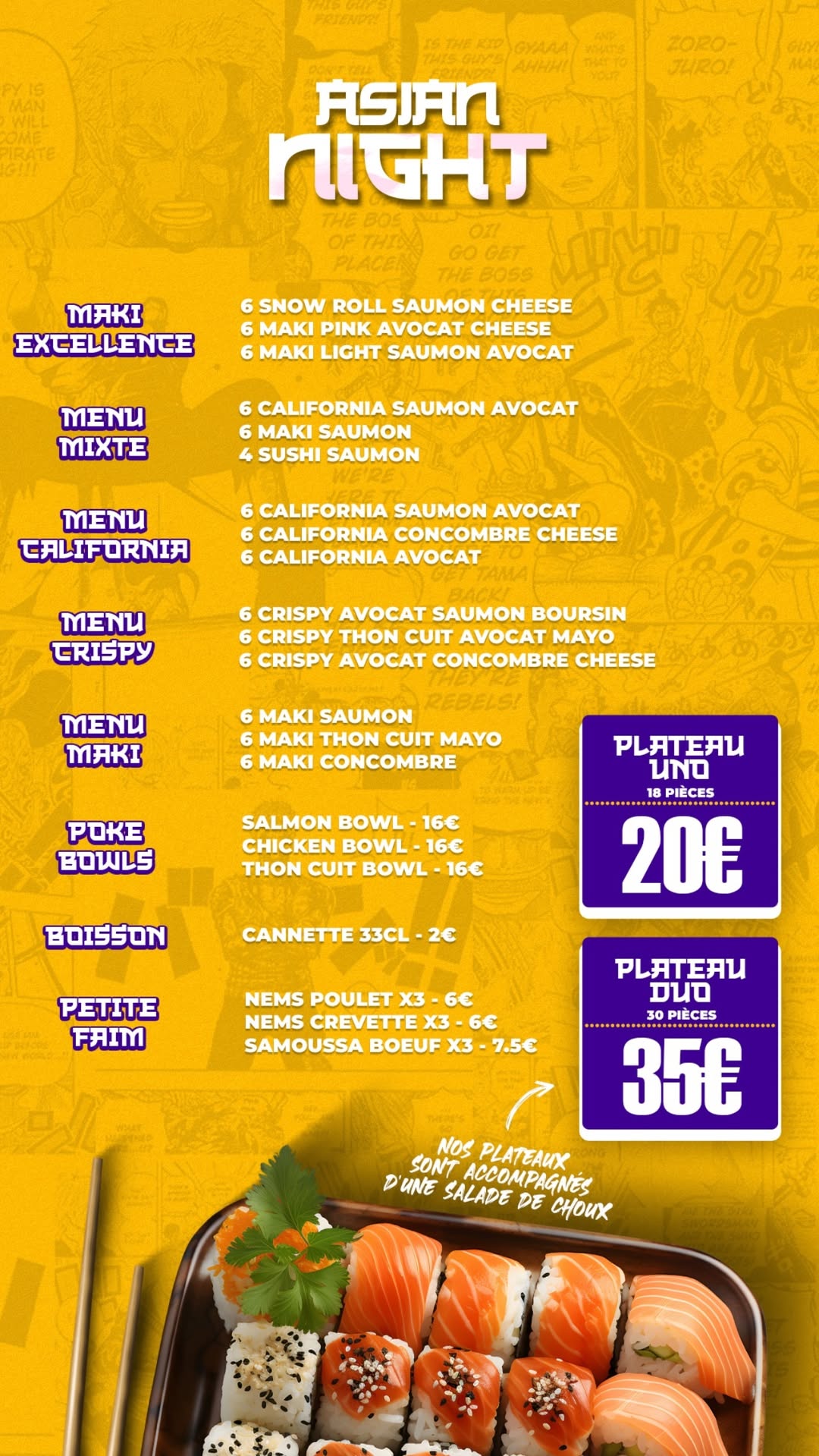 Asian Night est le service de livraison nocturne de l’enseigne Aka Sushi and Wok, couvrant toute l’agglomération lyonnaise jusqu’à 5h du matin, du jeudi au dimanche. Vous y trouverez l’offre complète d’Aka Sushi & Wok : sushis, makis, woks, poke bowls et plus encore, préparés à partir d’ingrédients frais, livrés directement chez vous pour une escapade gourmande après minuit.