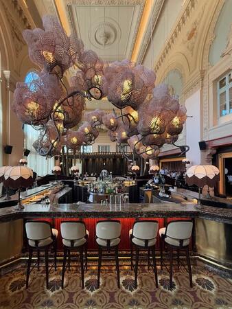Coco Lyon, situé à la Gare des Brotteaux, offre une expérience gastronomique raffinée dans un cadre somptueux inspiré des salons parisiens. Le décor mêle velours chatoyants, moquette à motifs palmiers et mobilier Napoléon III. La cuisine française de tradition revisitée joue la carte du luxe accessible, entre poulpe grillé, linguine au homard, et desserts gourmands signature.