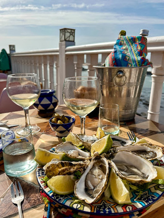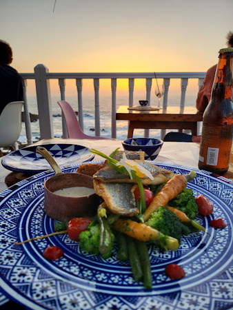 Salut Maroc a tout le caractère et le charme d’un restaurant de qualité, avec une vue magnifique sur l’océan Atlantique. Son décor fusionne des motifs orientaux, des couleurs vives et un mélange éclectique de meubles contemporains et anciens, ce qui le rend à la fois charmant et très chaleureux.